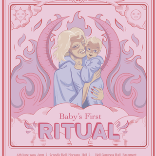 Inspired by American Horror Story: Apocalypse, these illustrations were for a fictional called Baby's First Ritual, a mother and baby fair for those little spawns of Satan!